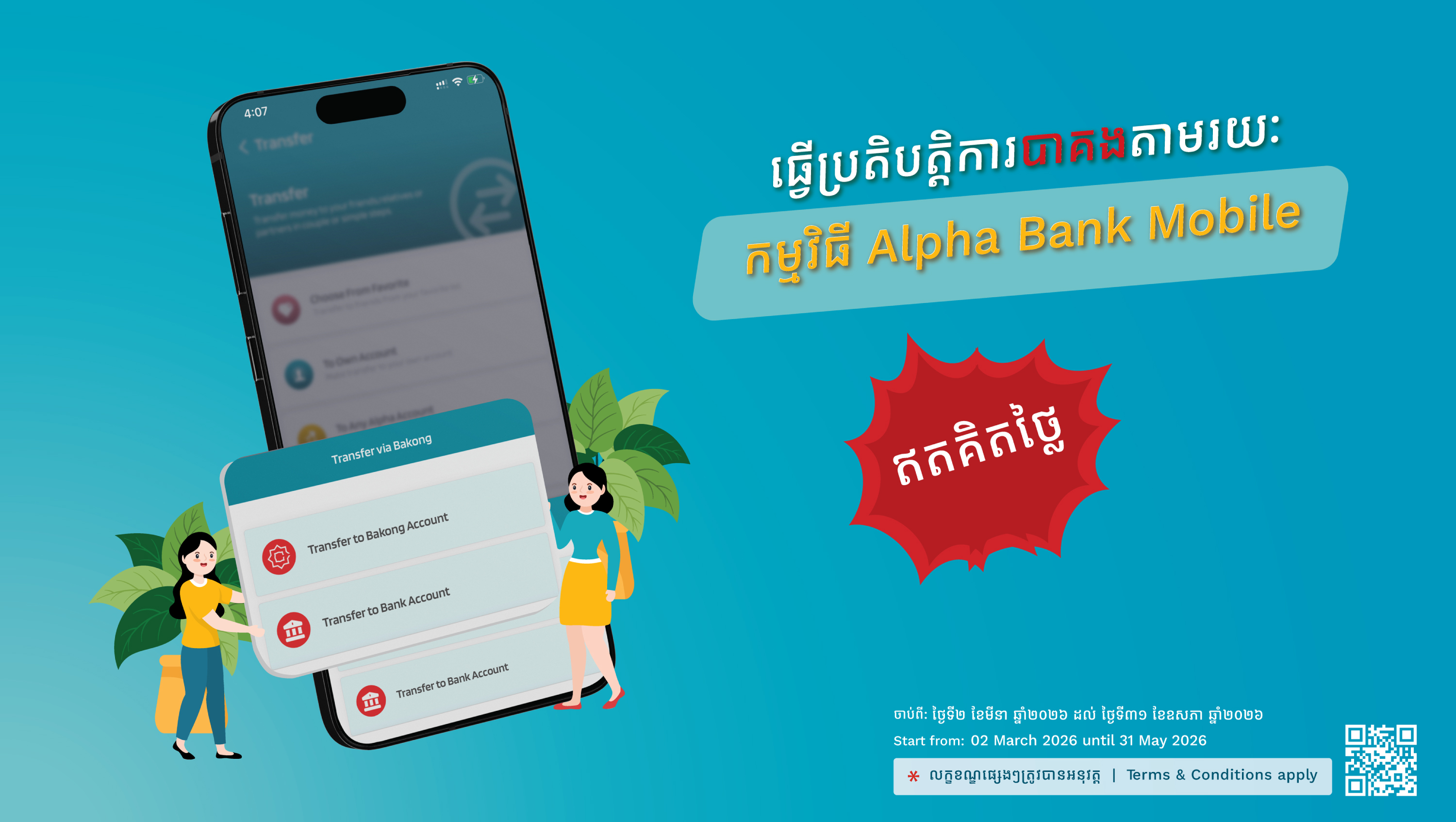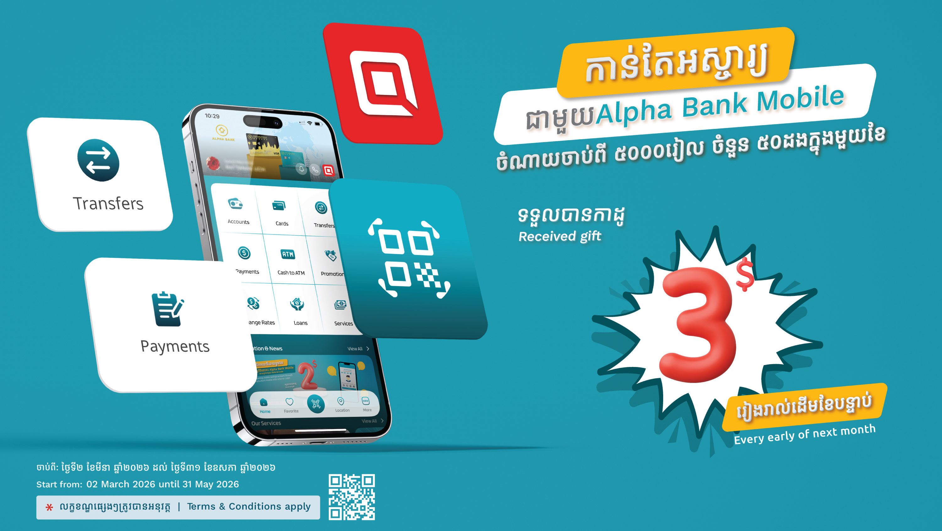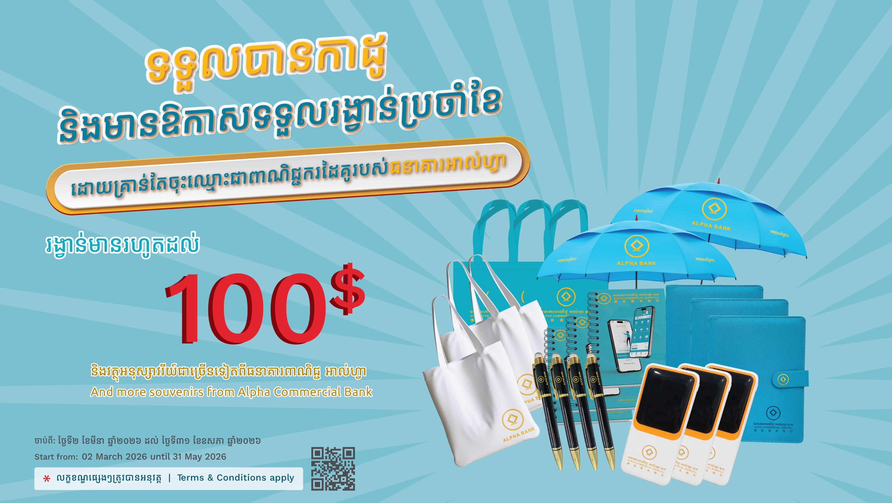 Available in 2 currencies: Khmer Riel (KHR) and US Dollar (USD).